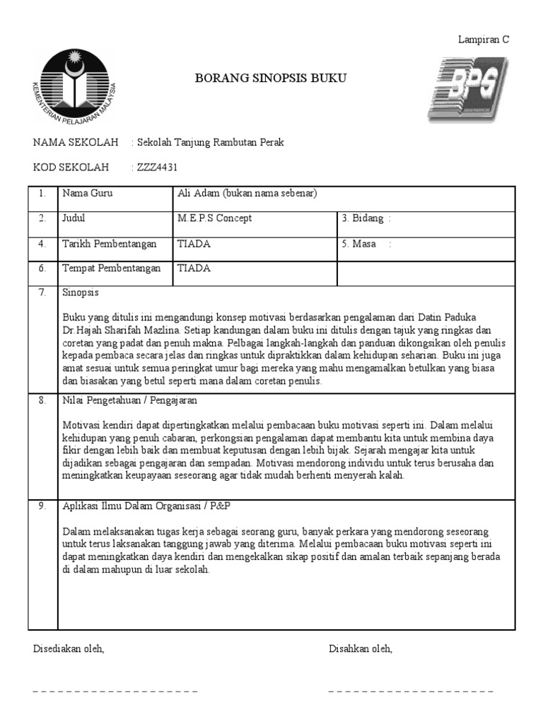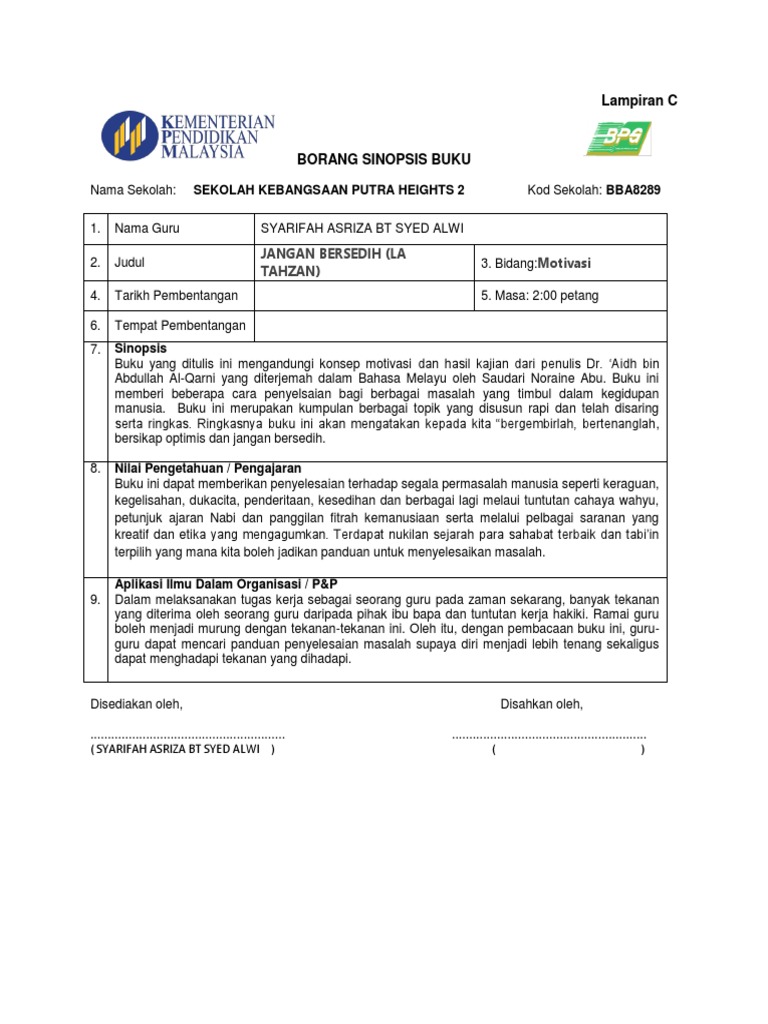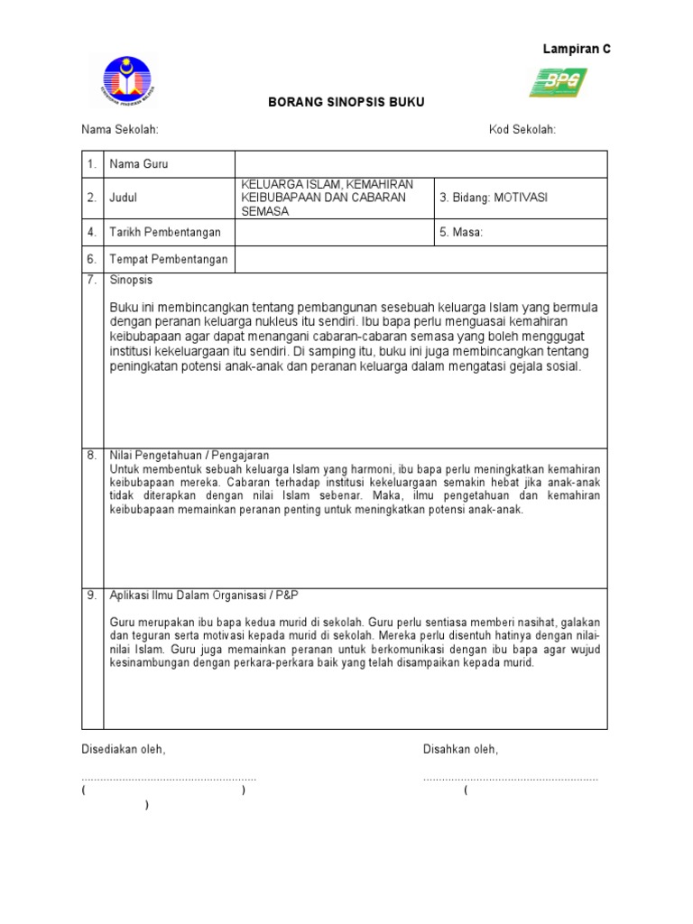 Borang Penulisan Sinopsis Buku Ldp 2 Pdf